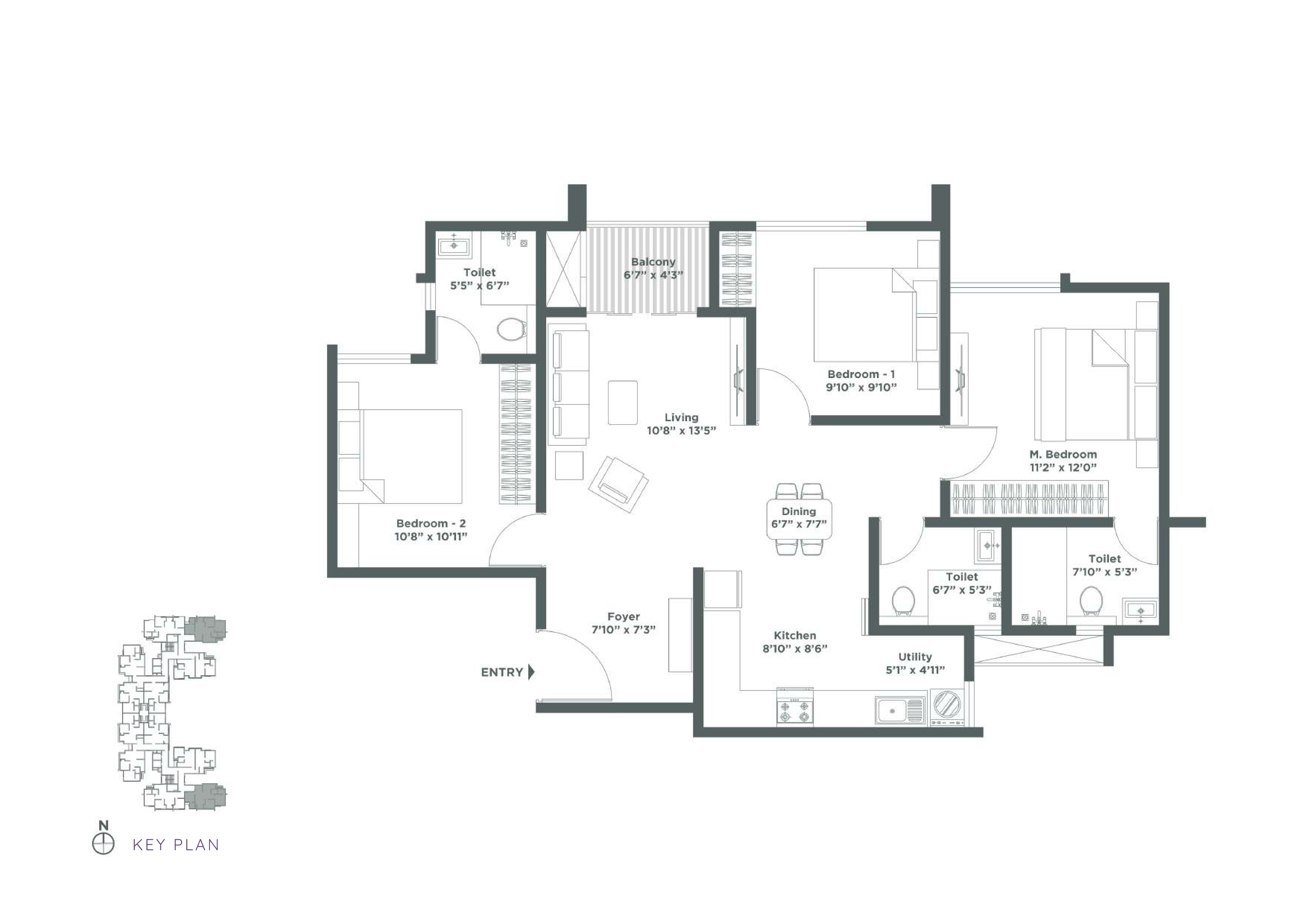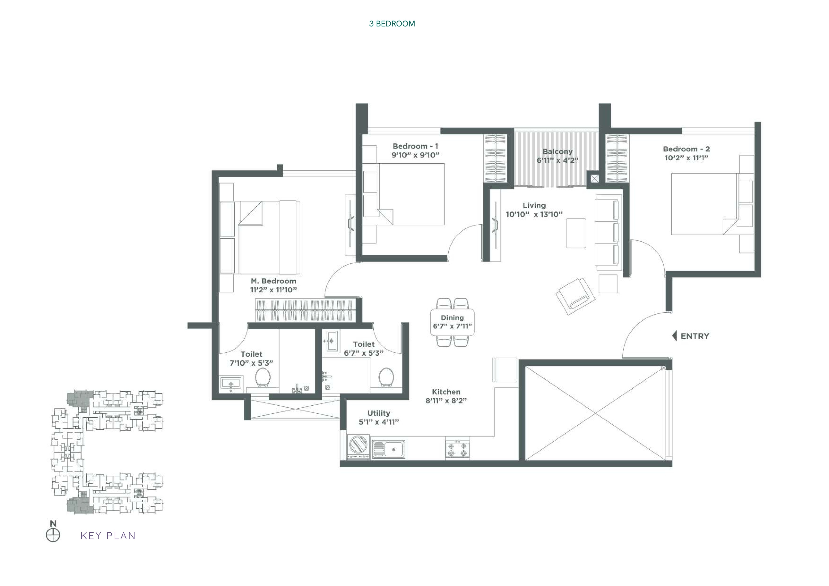 3 BHK | 2200 & 2400 Sq.Ft | ₹ 3.9 Cr* Onwards |
